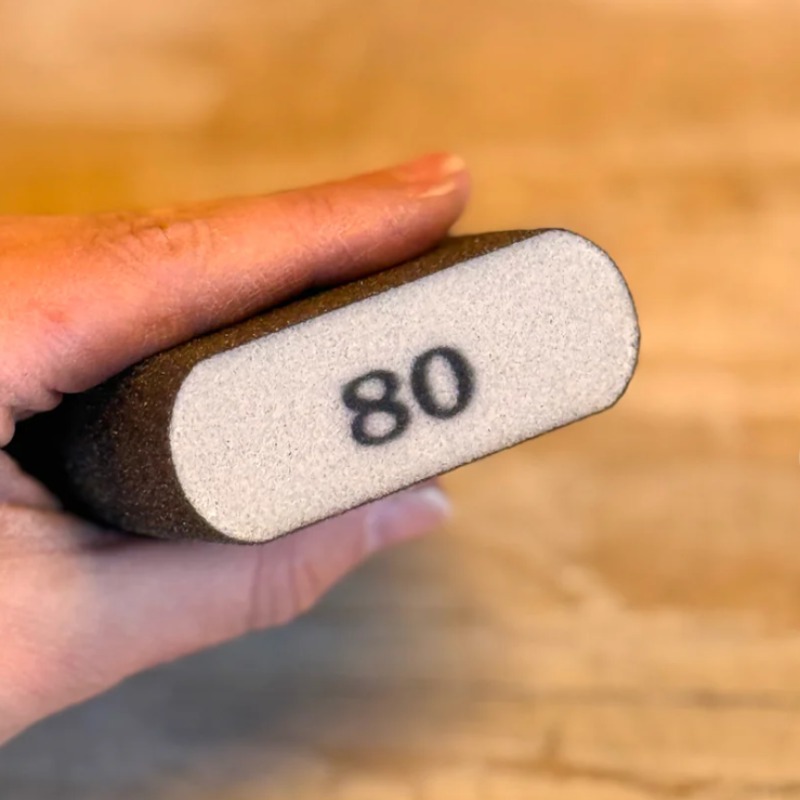 La esponja abrasiva para madera grano 80 es ideal para trabajos de preparación, lijado intenso y efectos de decapado en muebles y superficies de madera.